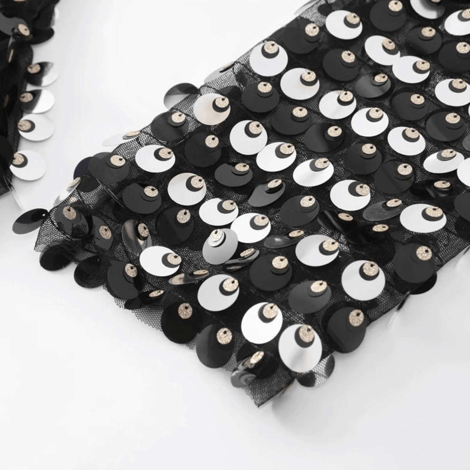 Her ortamda parlayın! Bu kısa payetli elbise, şık görünümüyle partilerde ve etkinliklerde öne çıkmanız için mükemmel bir seçim.