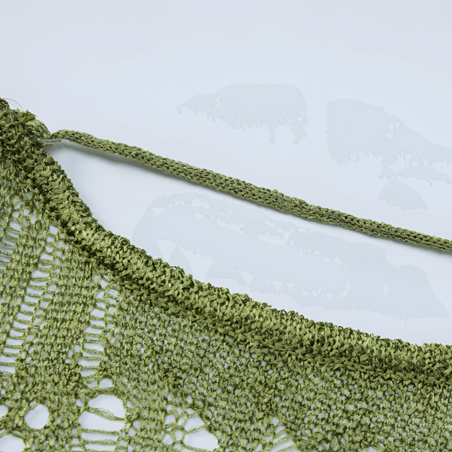✨ Sofistike Tasarım: Modern ve zarif bir dokunuş için kenarları işlenmiş, delikli geometrik desenli kroşe kumaş.