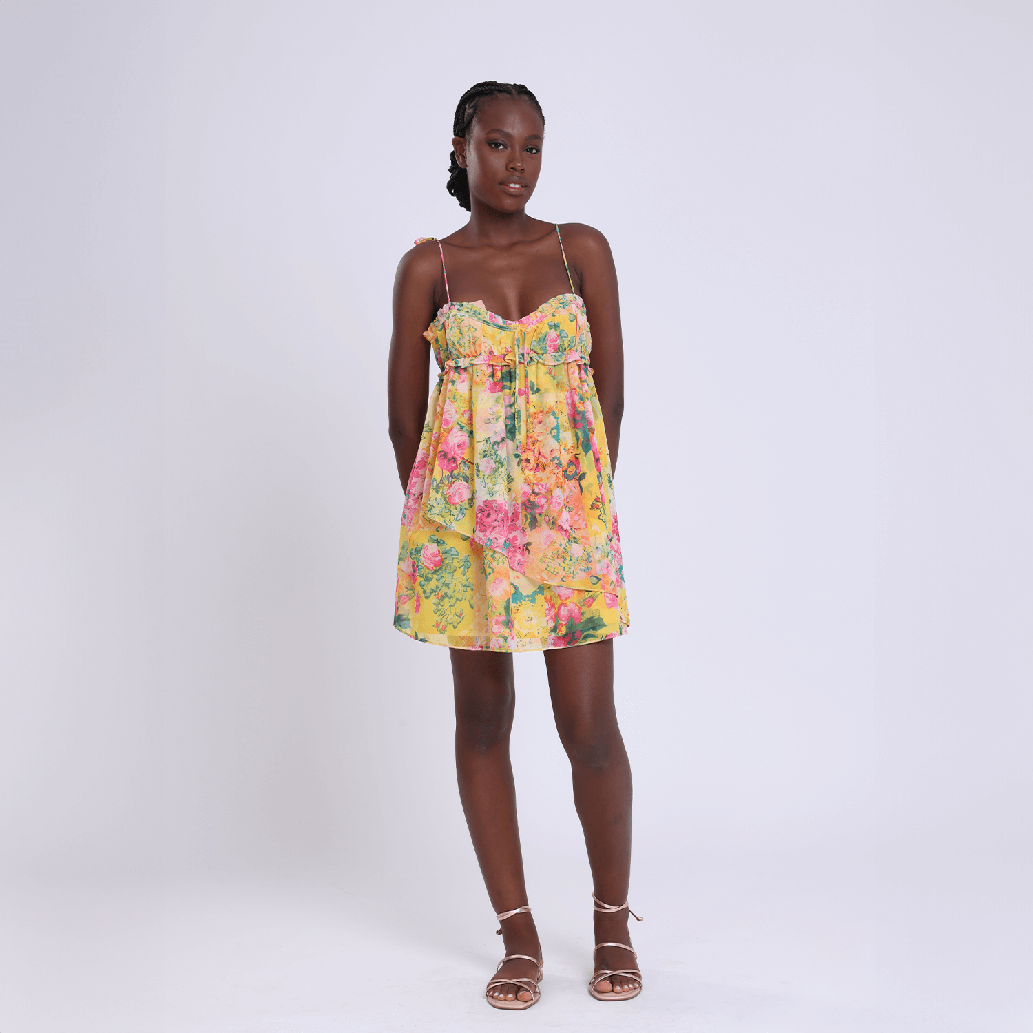 Her ortamda öne çıkın: Bu hafif çiçek desenli elbise, güneşli günler ve unutulmaz anlar için mükemmeldir.
