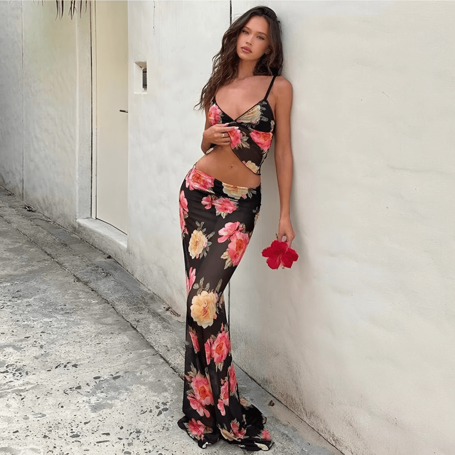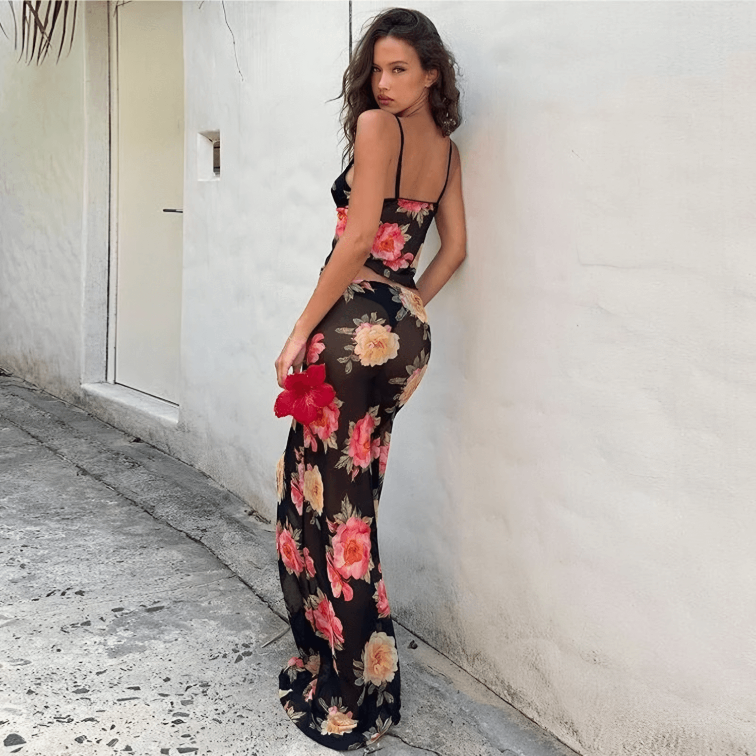 Her türlü ortama uyum sağlayan bu uzun çiçek desenli takım ile zarafeti, hafifliği ve konforu bir araya getirerek unutulmaz bir görünüm elde edin.
