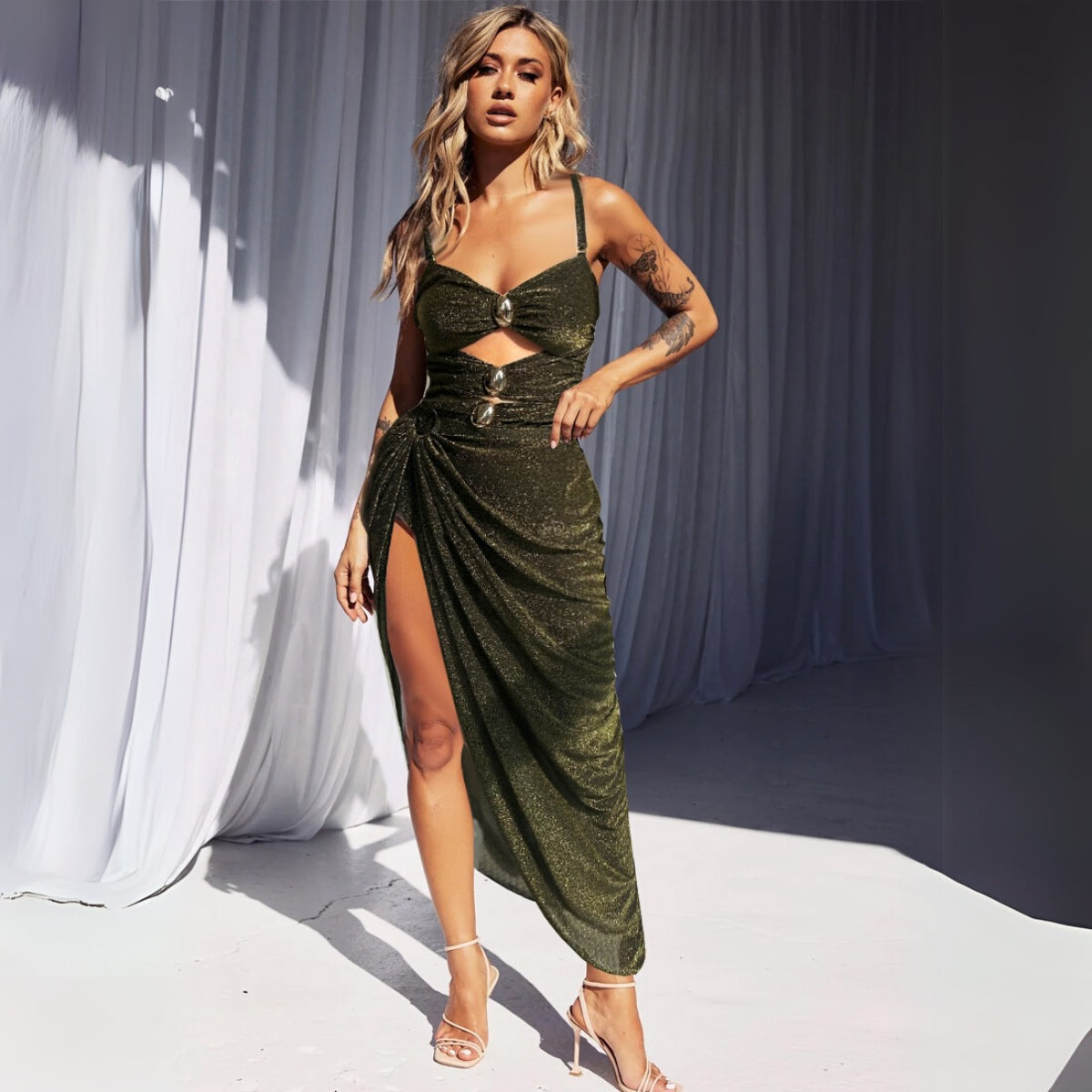 Altın ışıltısıyla göz kamaştıran bu özel tasarım mayo, zarif kesimi ve şıklığı bir araya getiriyor. Vücuda oturan formu ve dikkat çekici üç adet altın tokasıyla plajda veya havuz başında stilinizi konuşturun. Kadife dokulu, metalik parlak kumaşı sayesinde hem sofistike bir görünüm hem de yüksek konfor sunar.