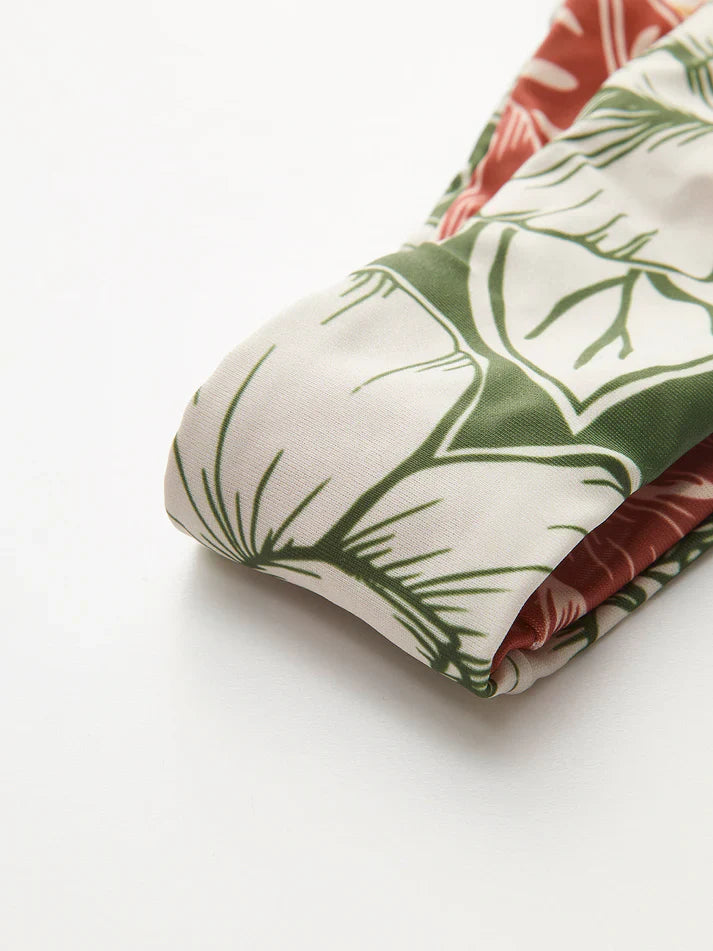 • Desen ve Renk: Üst kısmın ana renkleri kırmızımsı tonlar ve zeytin yeşili olup, üzerine beyaz çiçek desenleri işlenmiştir. Çiçek desenleri tropikal bir hava katmaktadır.