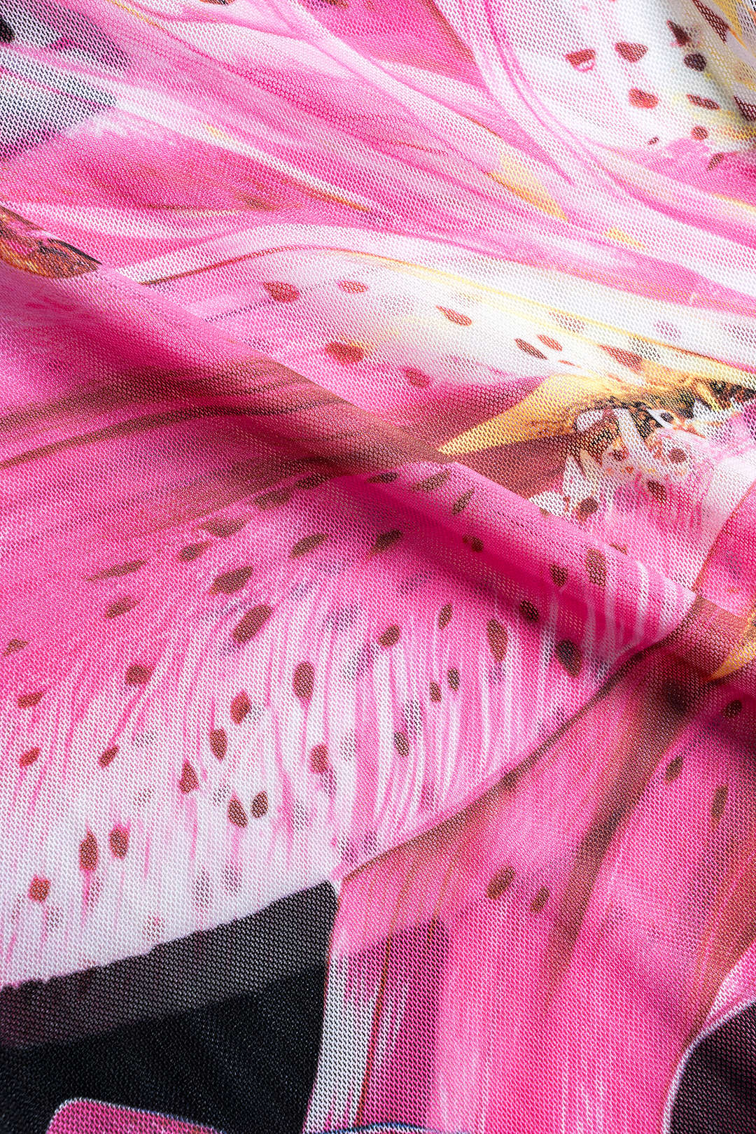• Bikini Üstü: Ayarlanabilir üçgen kesim, ince bağcık detaylarıyla kişisel uyum sağlar. Göğüs bölgesindeki büyük çiçek baskısı, tasarıma canlılık ve hareket katar.