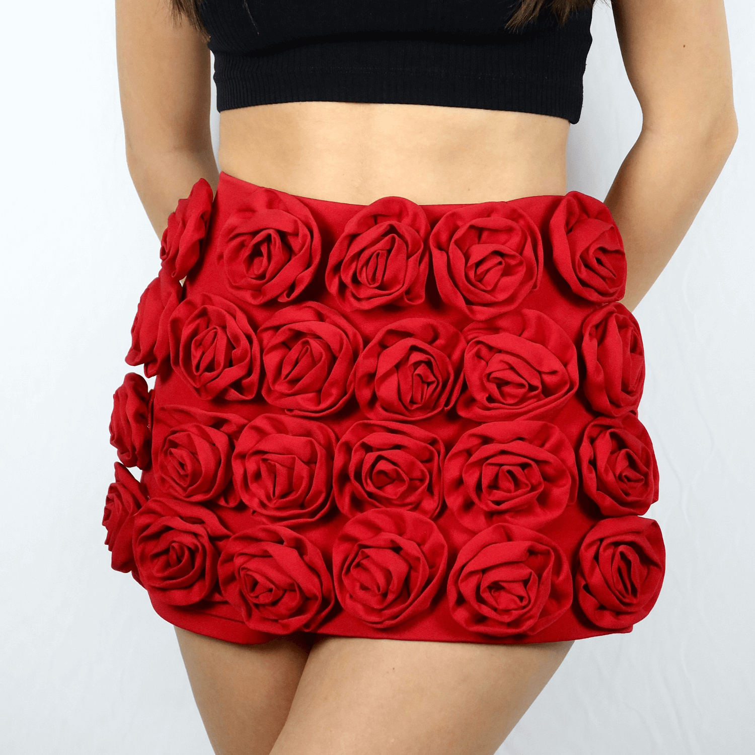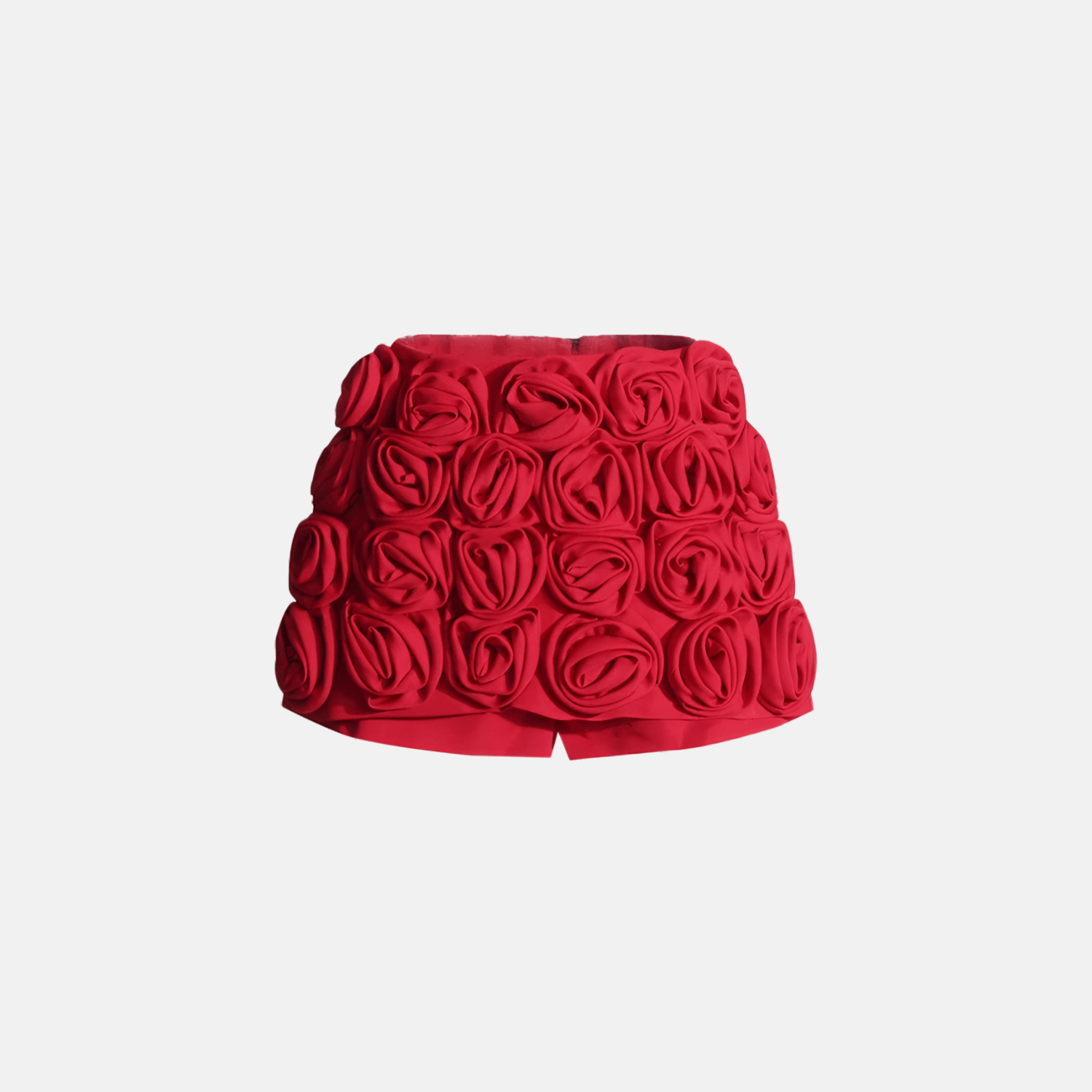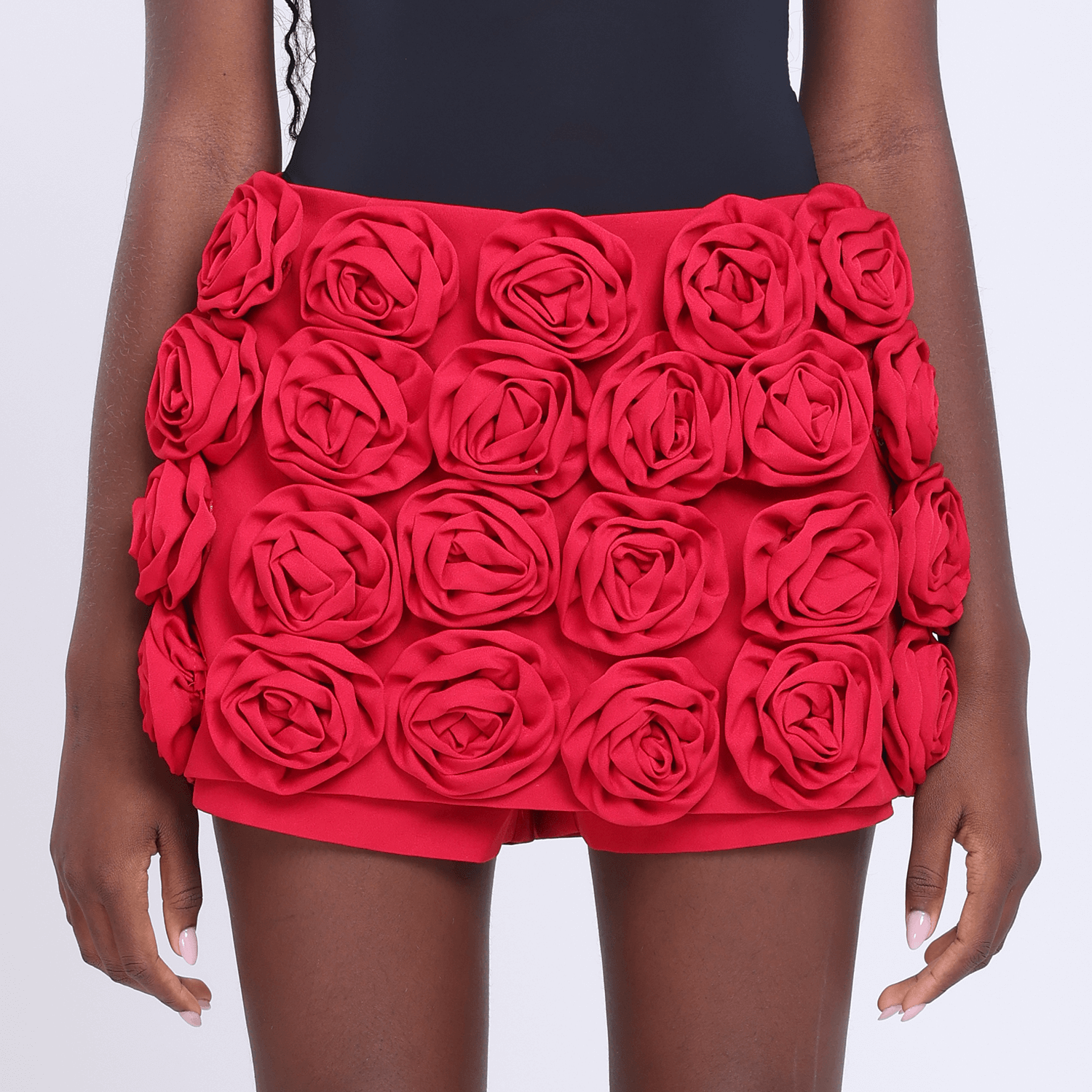 Bu yüksek bel, kısa etek ve 3D gül detaylarıyla tarzınızı dönüştürün; her ortamda çarpıcı görünümler yaratmak için mükemmel bir parça!