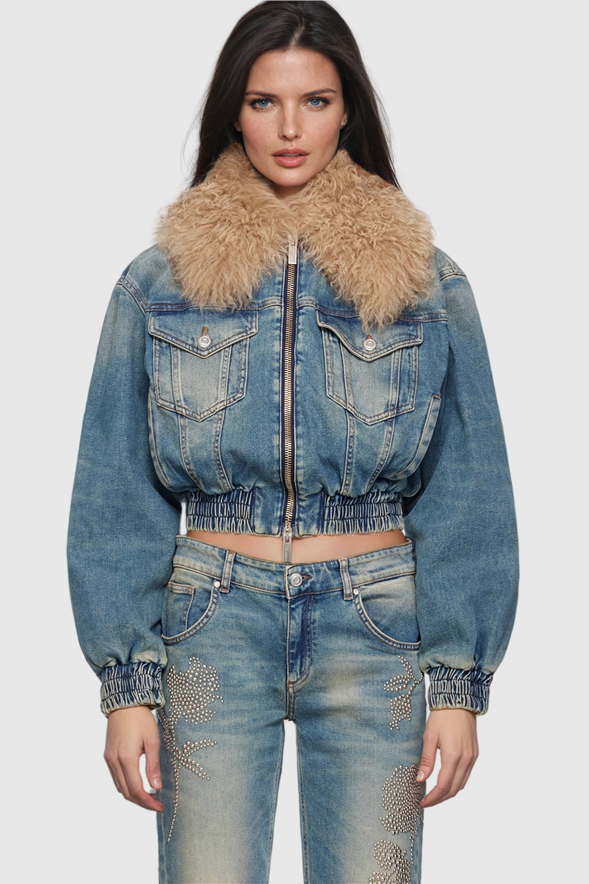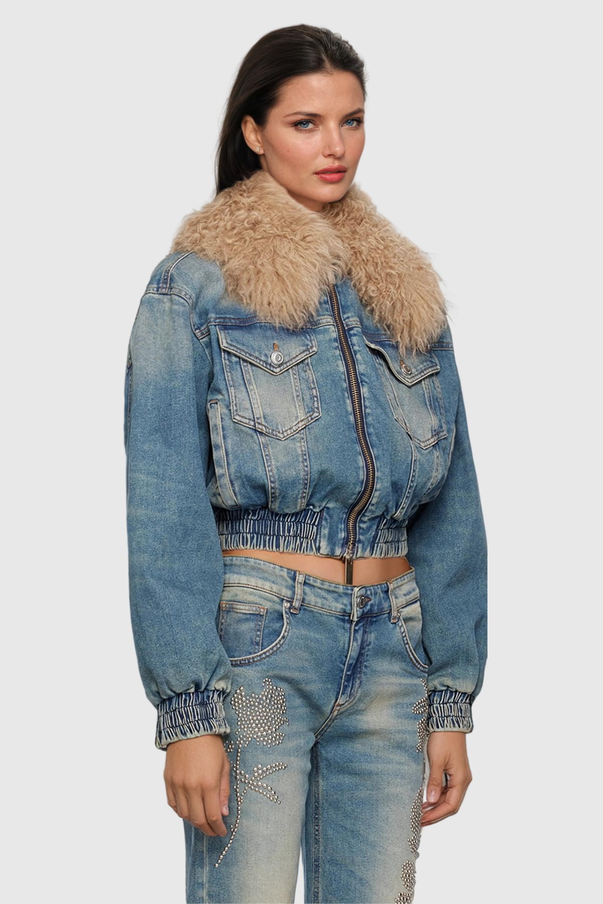 Akuna Kürk Dantelli Cepli Denim Ceket