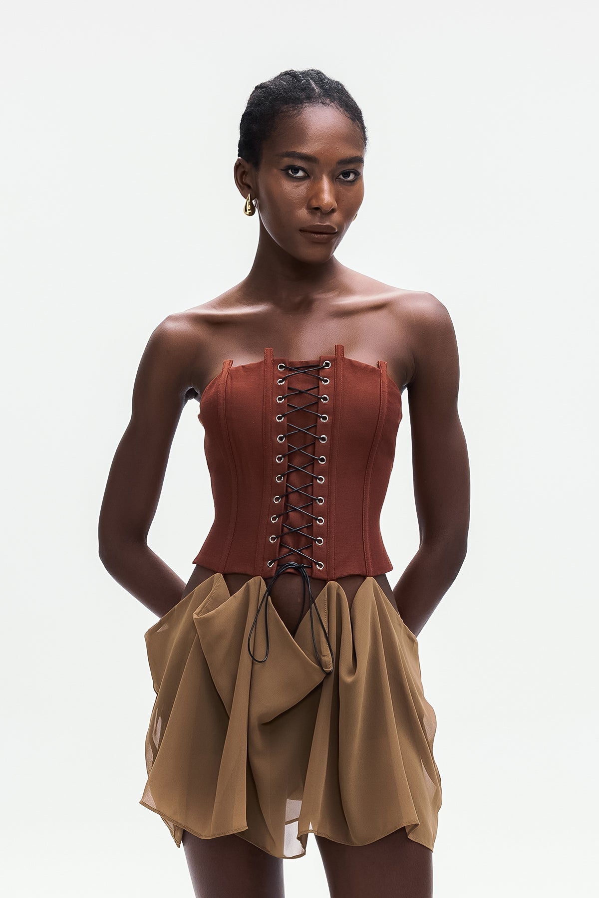 Askısız Korse Bağcıklı Mini Elbise