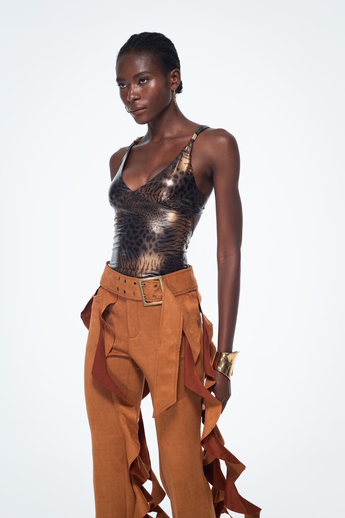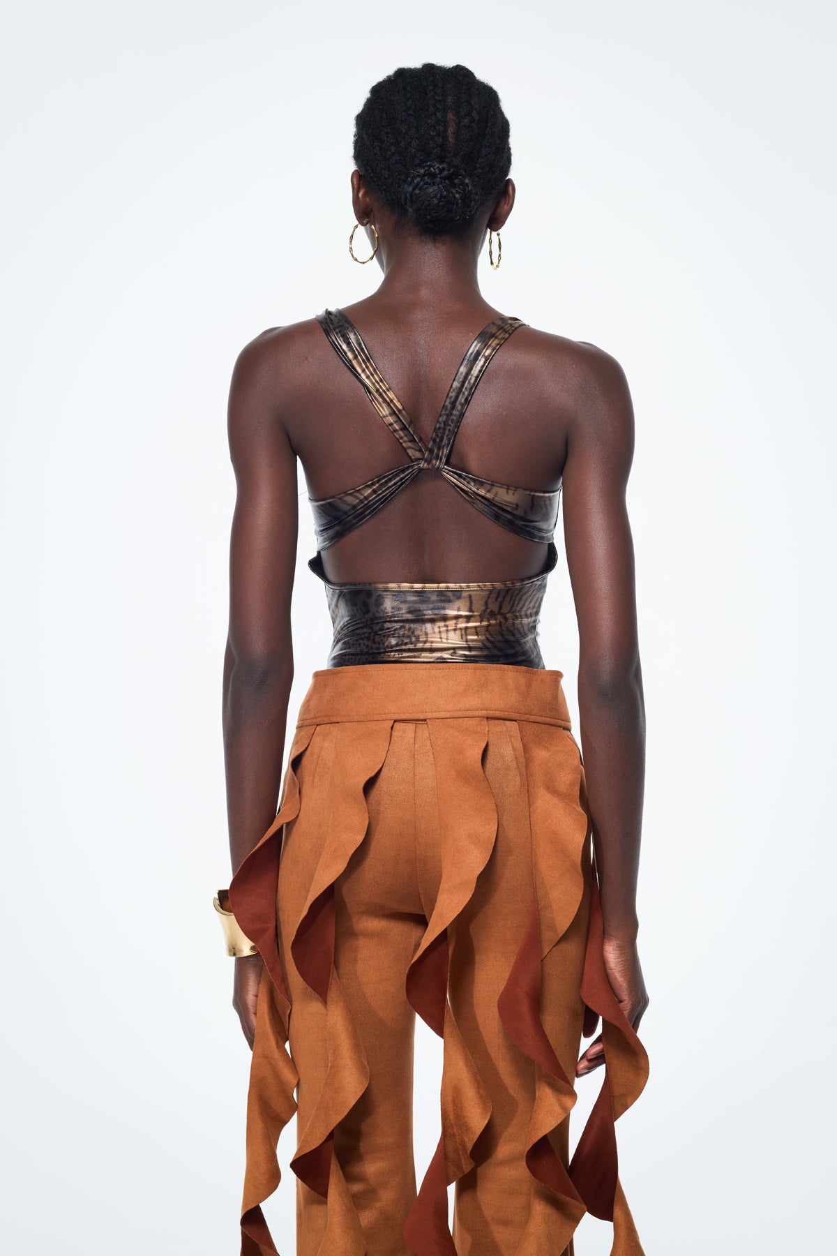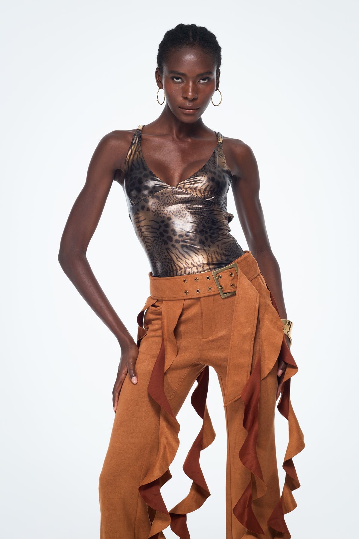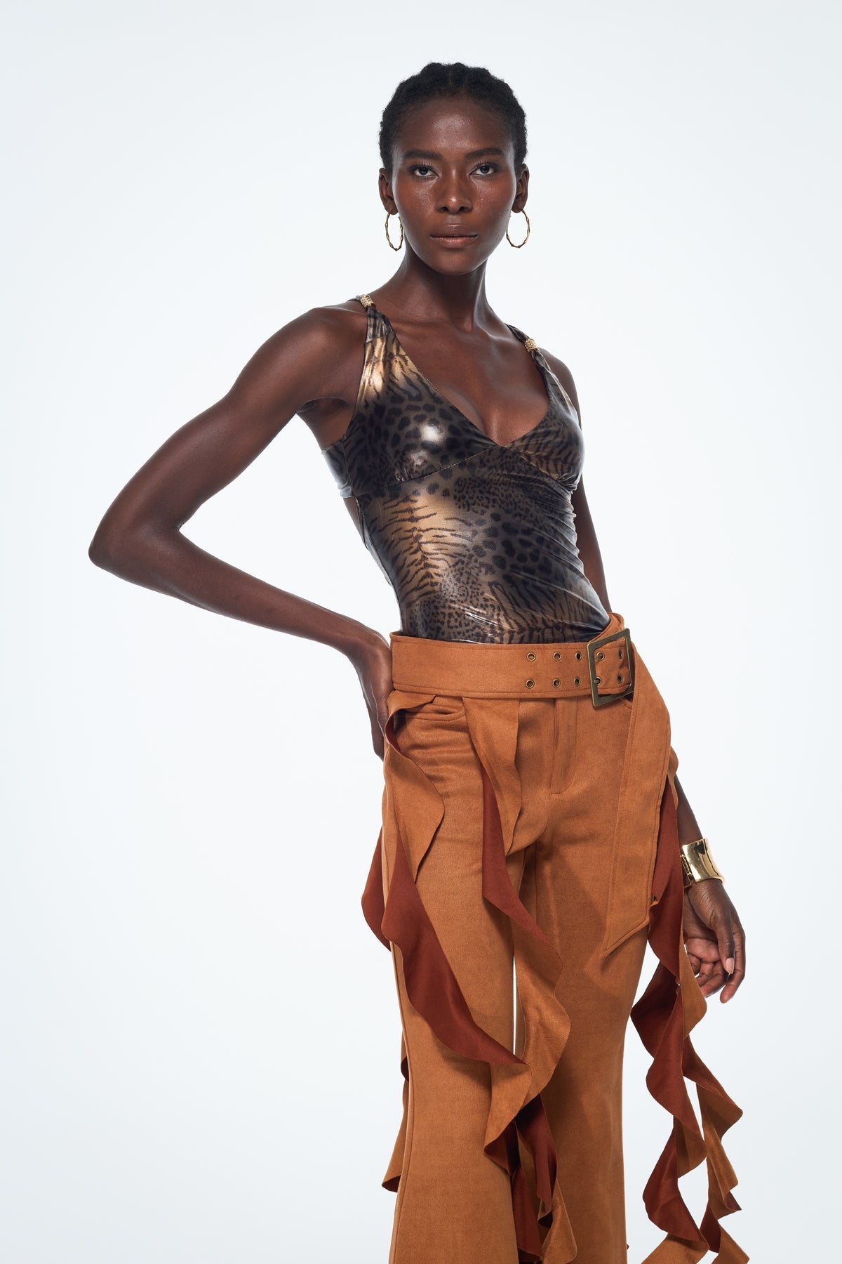 Leopar Sırtı Açık Vücuda Oturan Üst