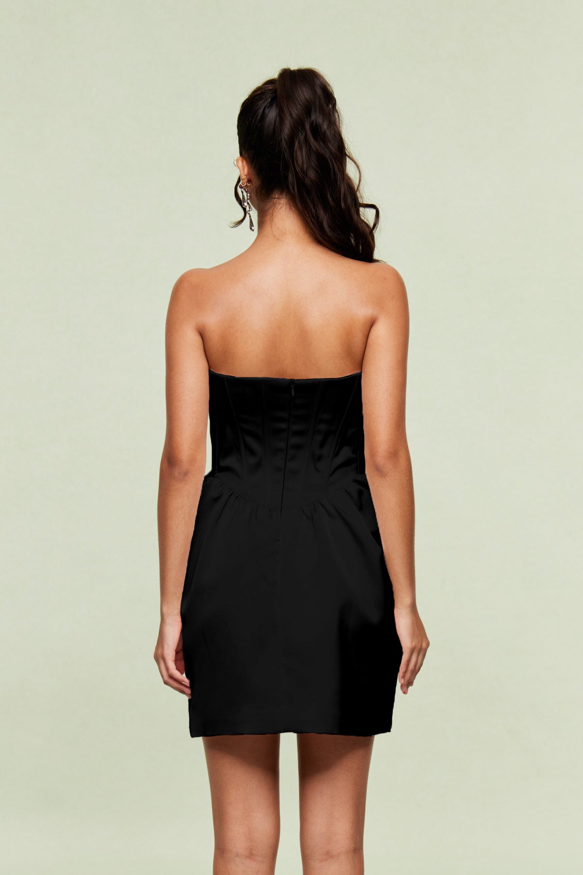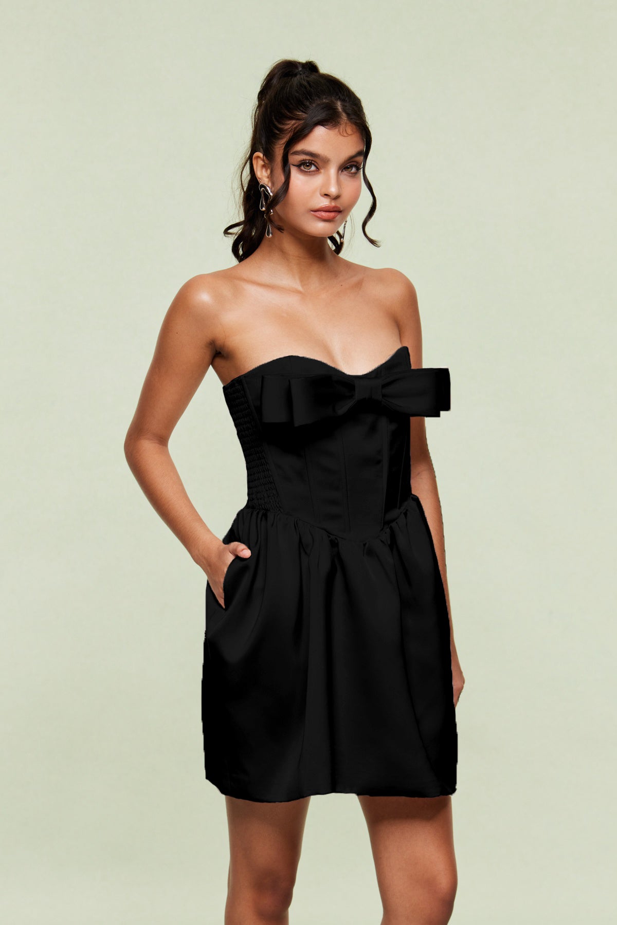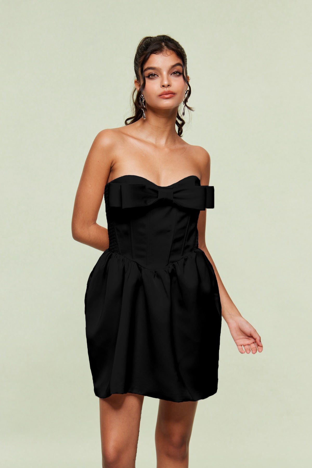 Straplez Fiyonklu Korse Mini Elbise Siyah