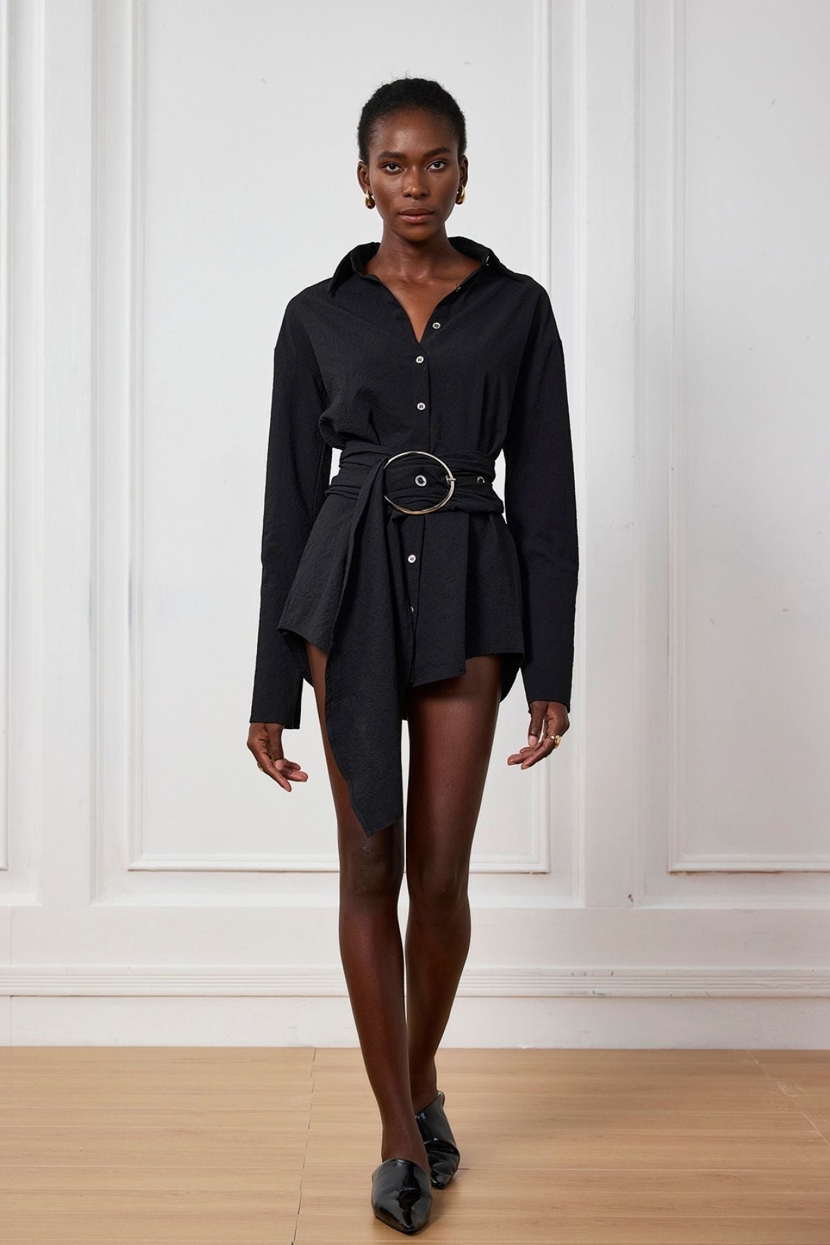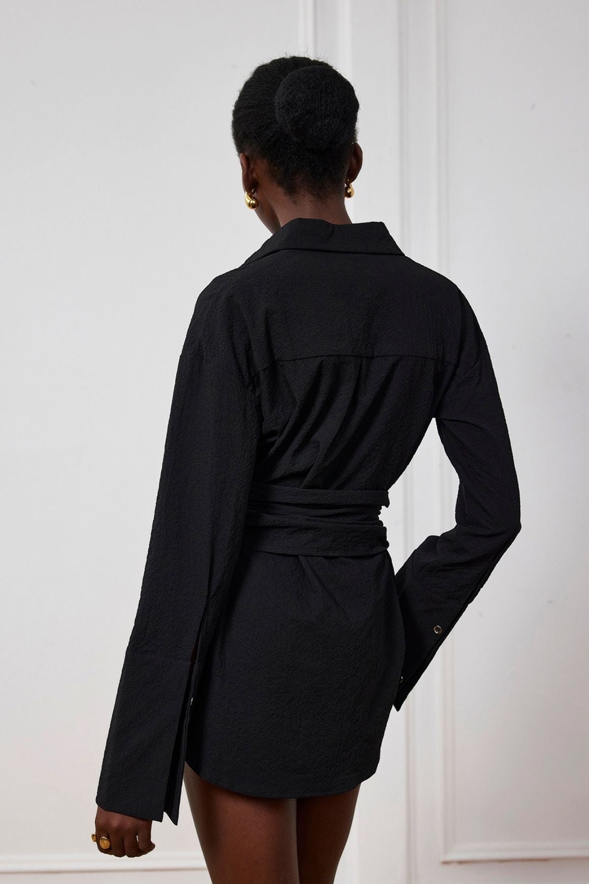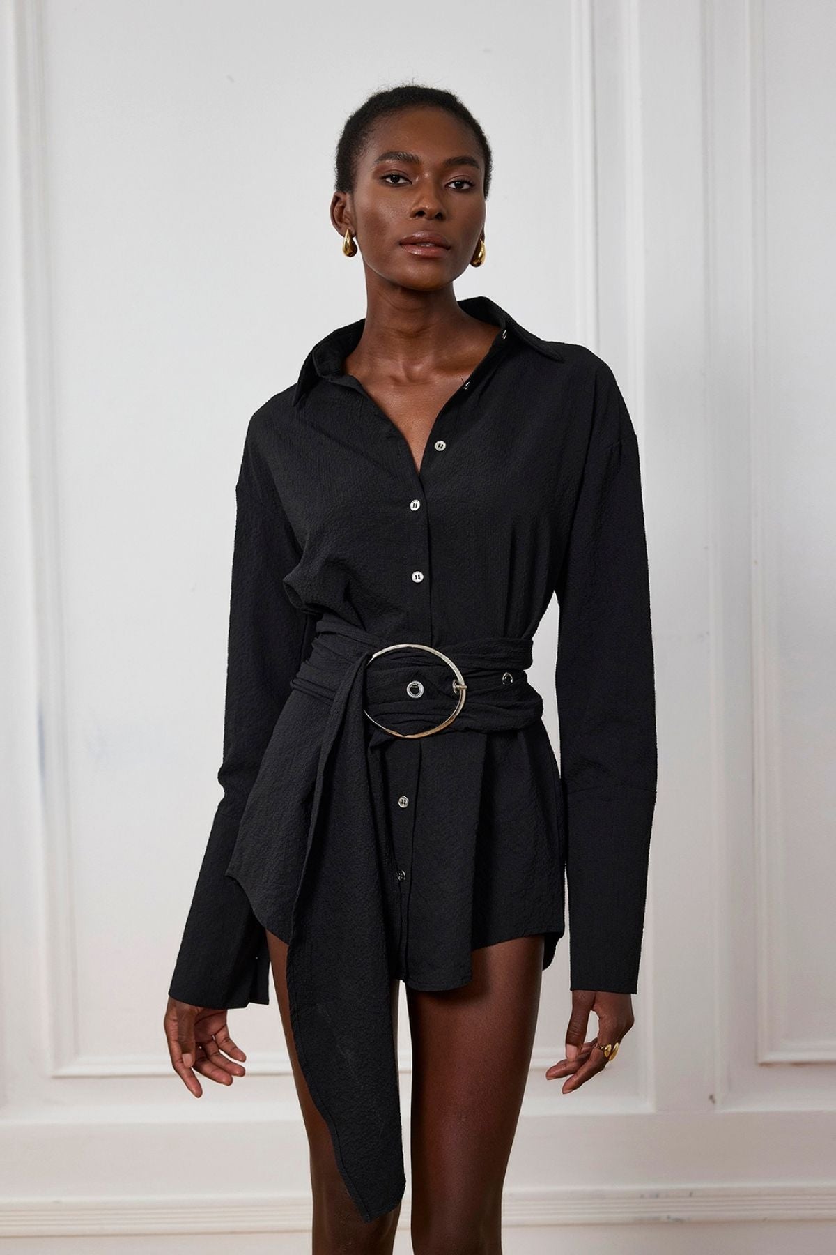 Tokalı Dantelli Gömlek Siyah Mini Elbise