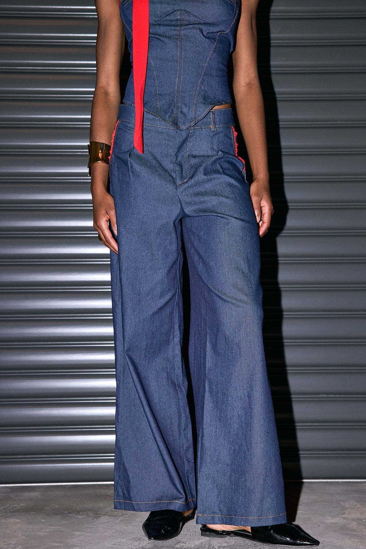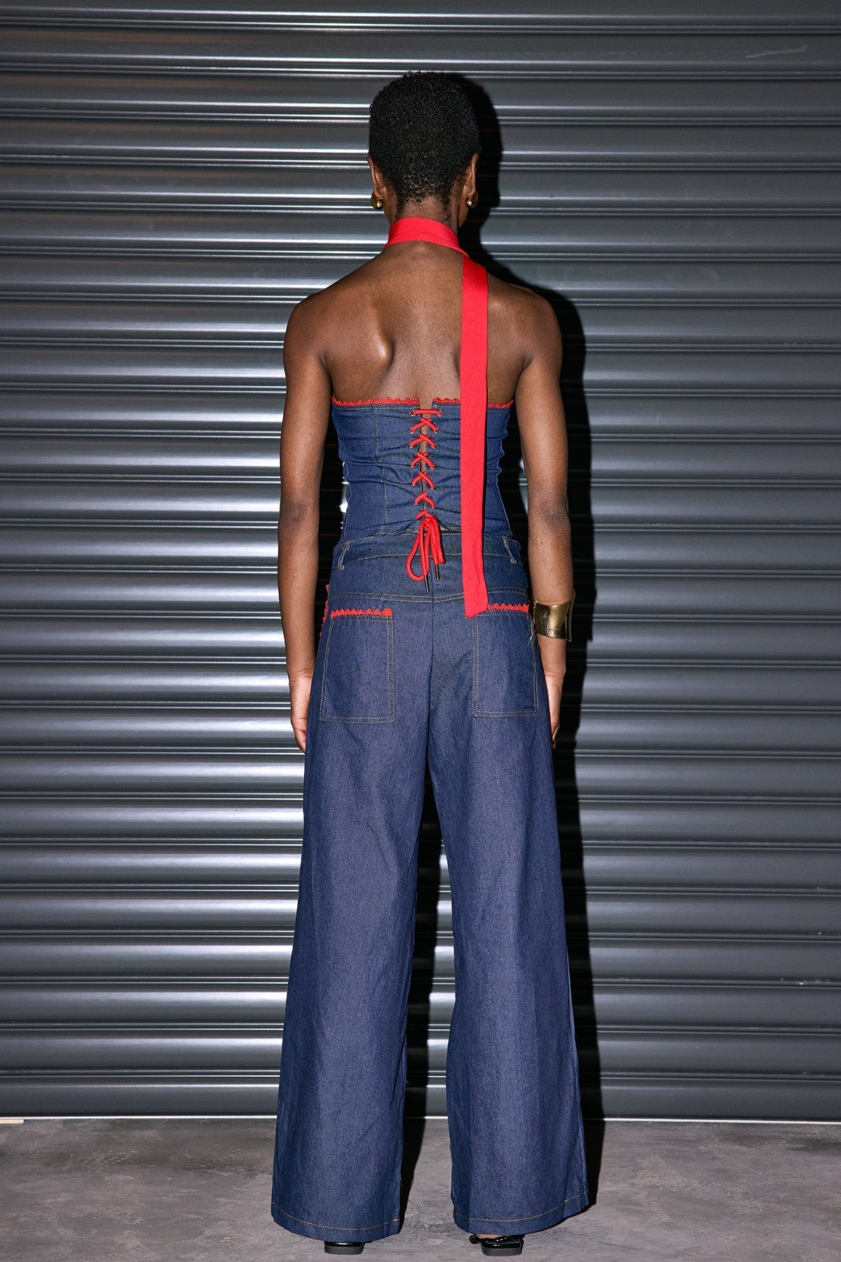 Straplez Bağcıklı Denim Set