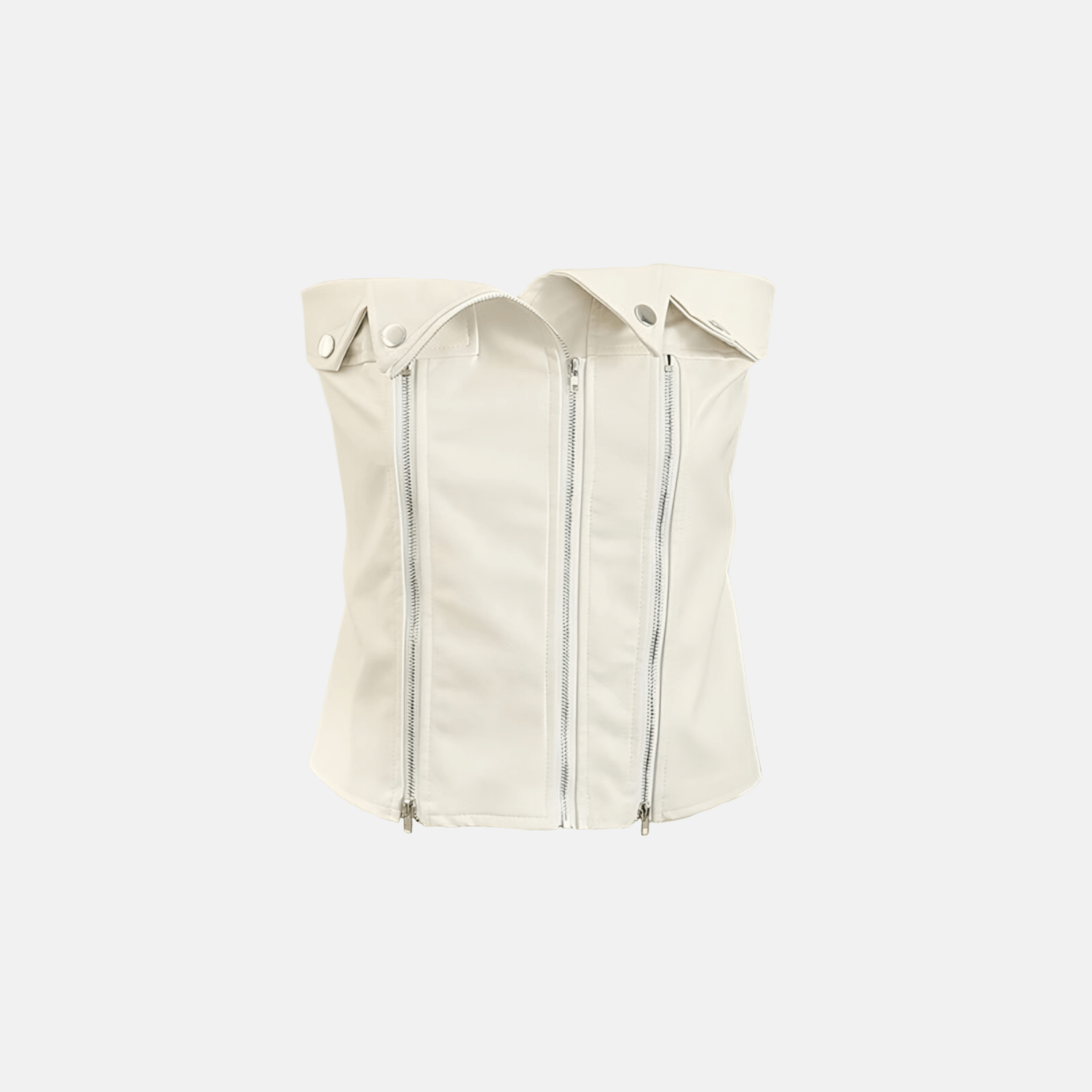 Çift dekoratif ön fermuarı ve metalik detayları ile tarzınıza öne çıkan ve iddialı bir dokunuş katar.