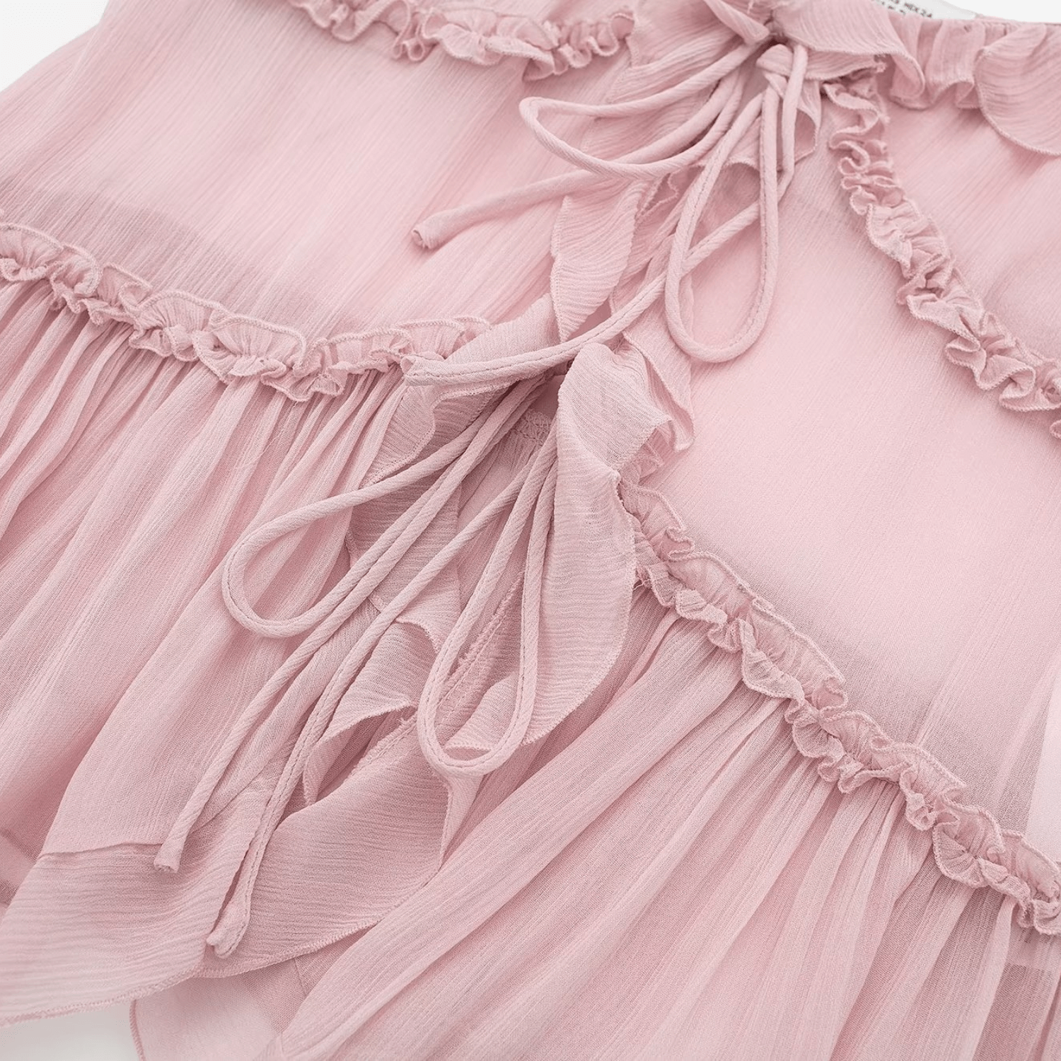 🌸 Romantik Tasarım: Fırfır katmanları ve önde bağcık detayları, her kombini öne çıkaran zarif ve feminen bir dokunuş sunar.