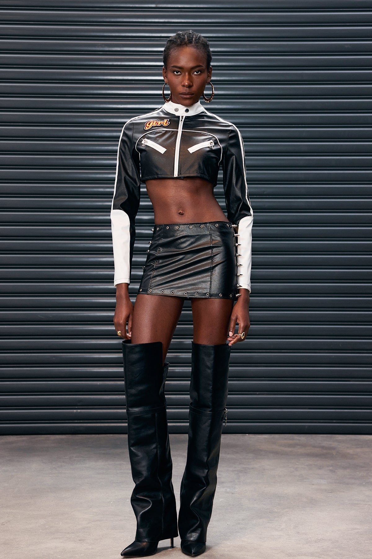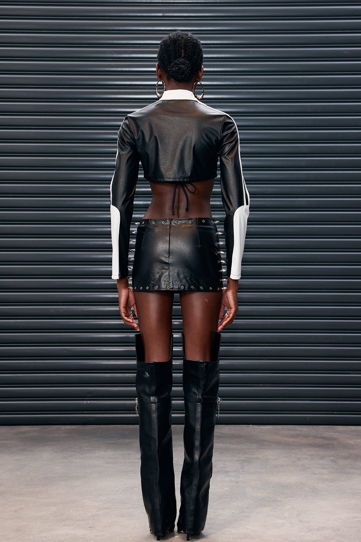 Antoine Çizgili Crop Deri Ceket