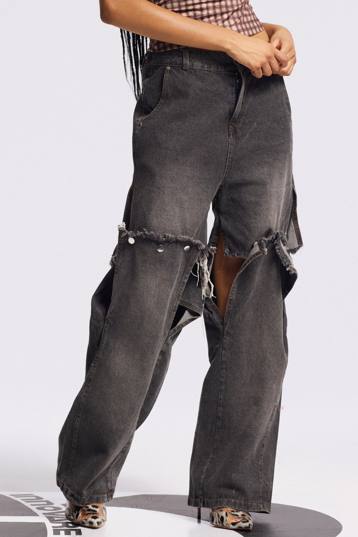 Deconstruct Saçaklı Düz Kot Siyah