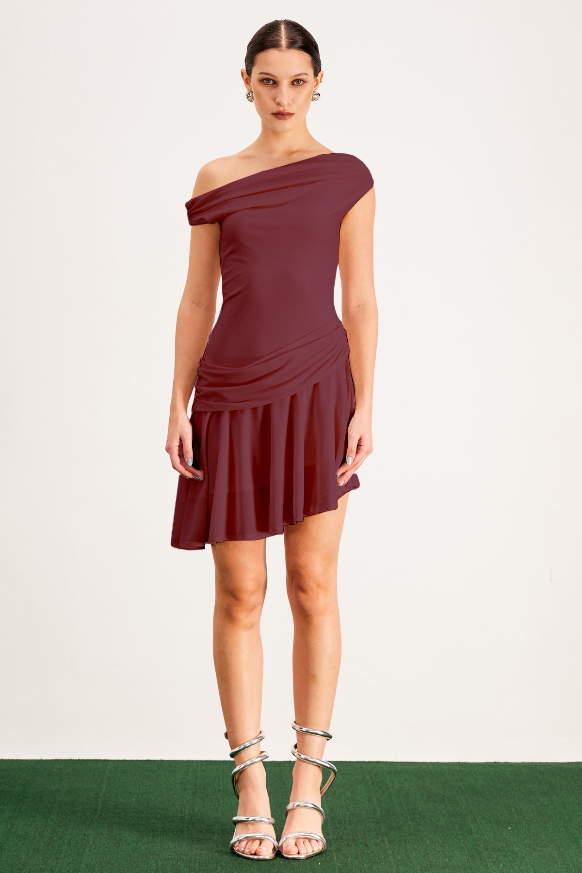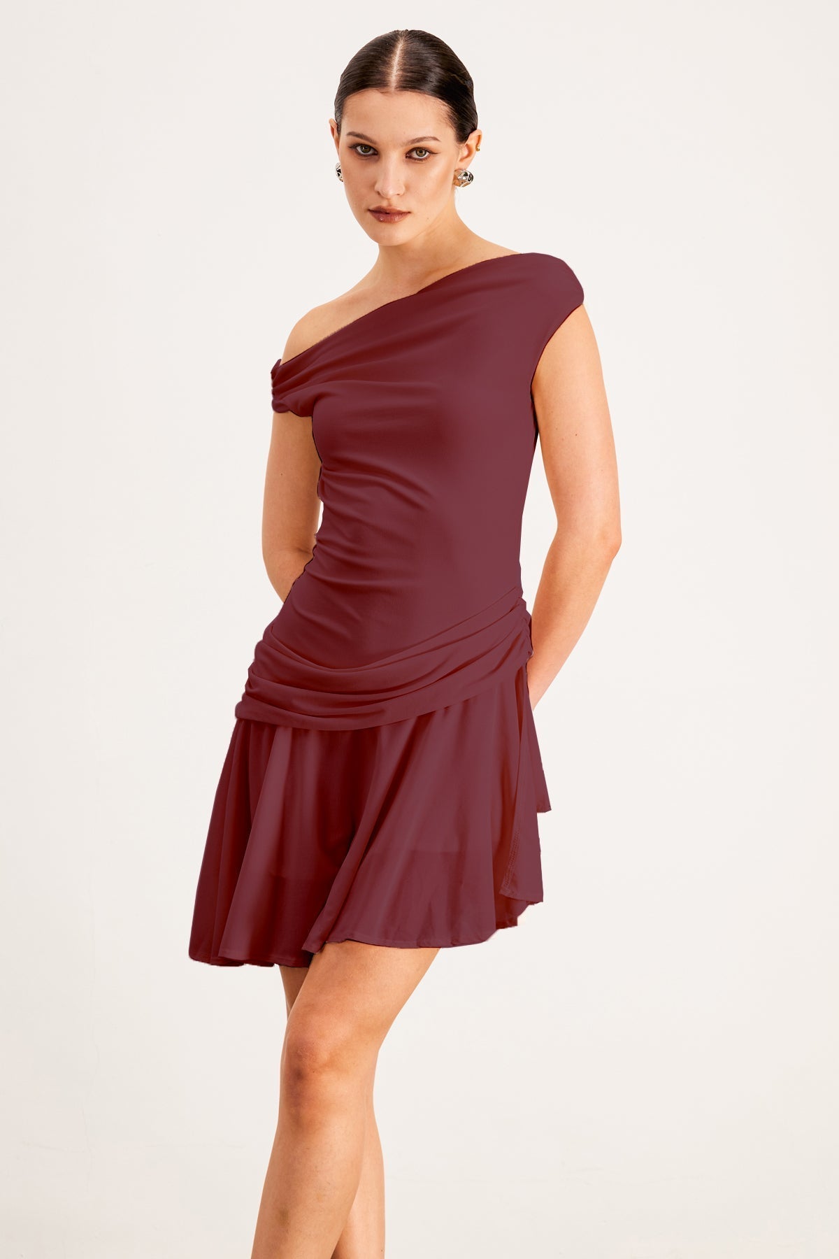 Balor Asimetrik Tek Omuzlu Kırmızı Mini Elbise