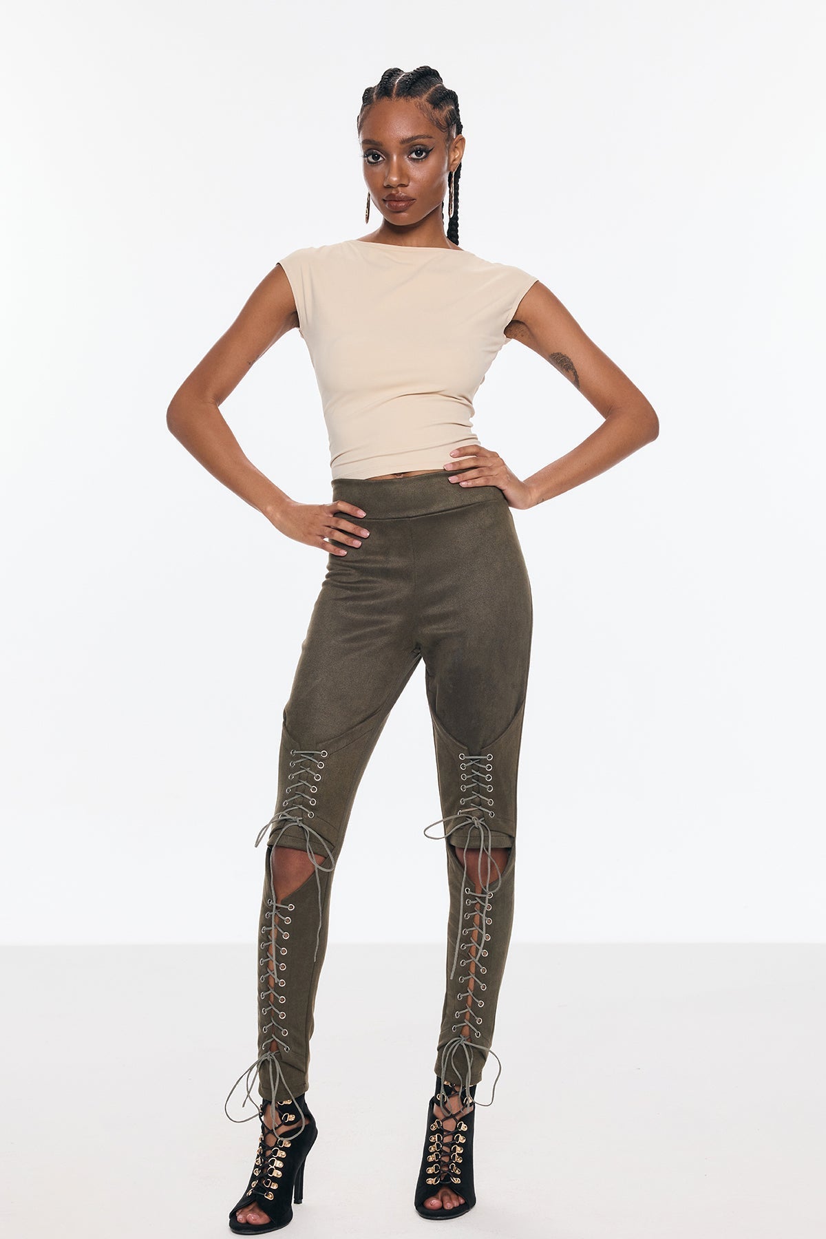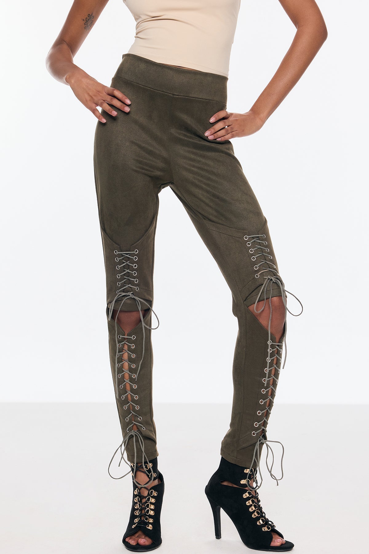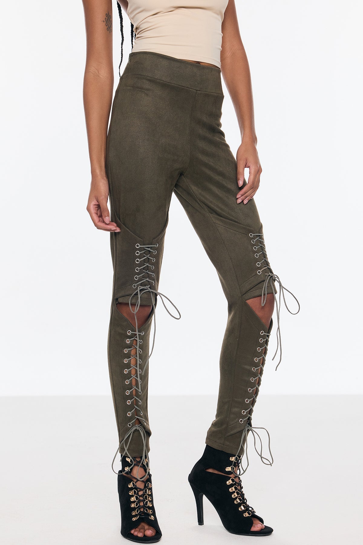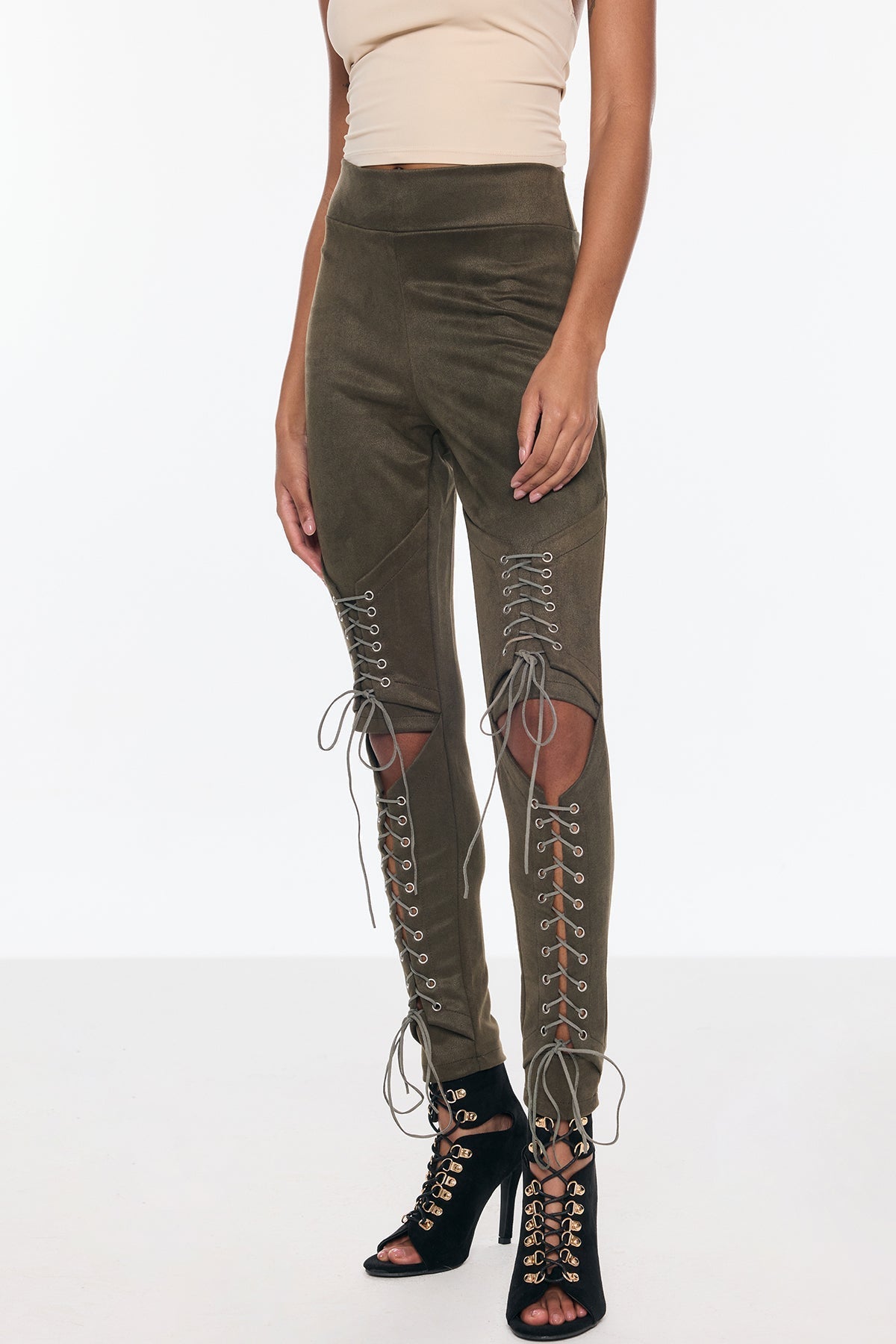 Benicio Süet Kesik Bağcıklı Dar Pantolon