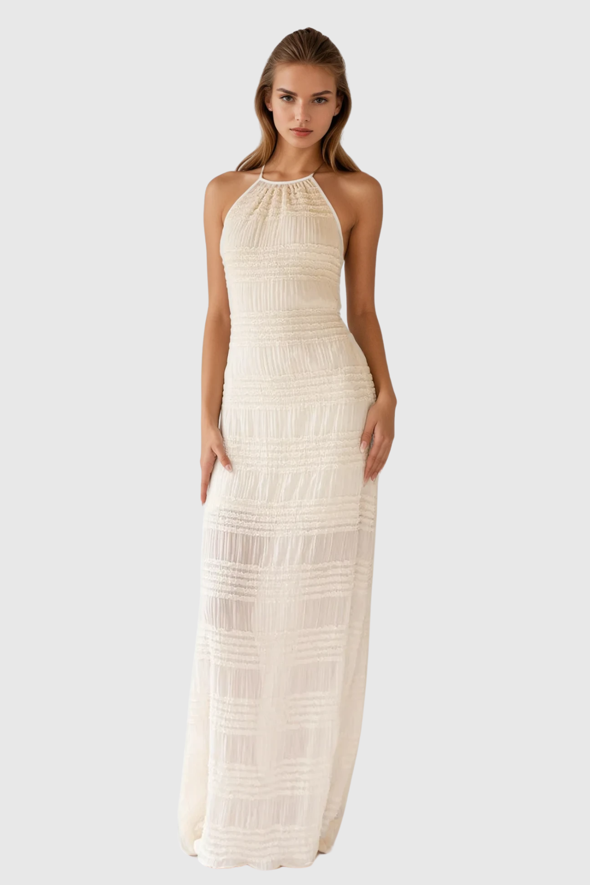 Bethany Halter Yaka Sırtı Açık Ruch Uzun Elbise