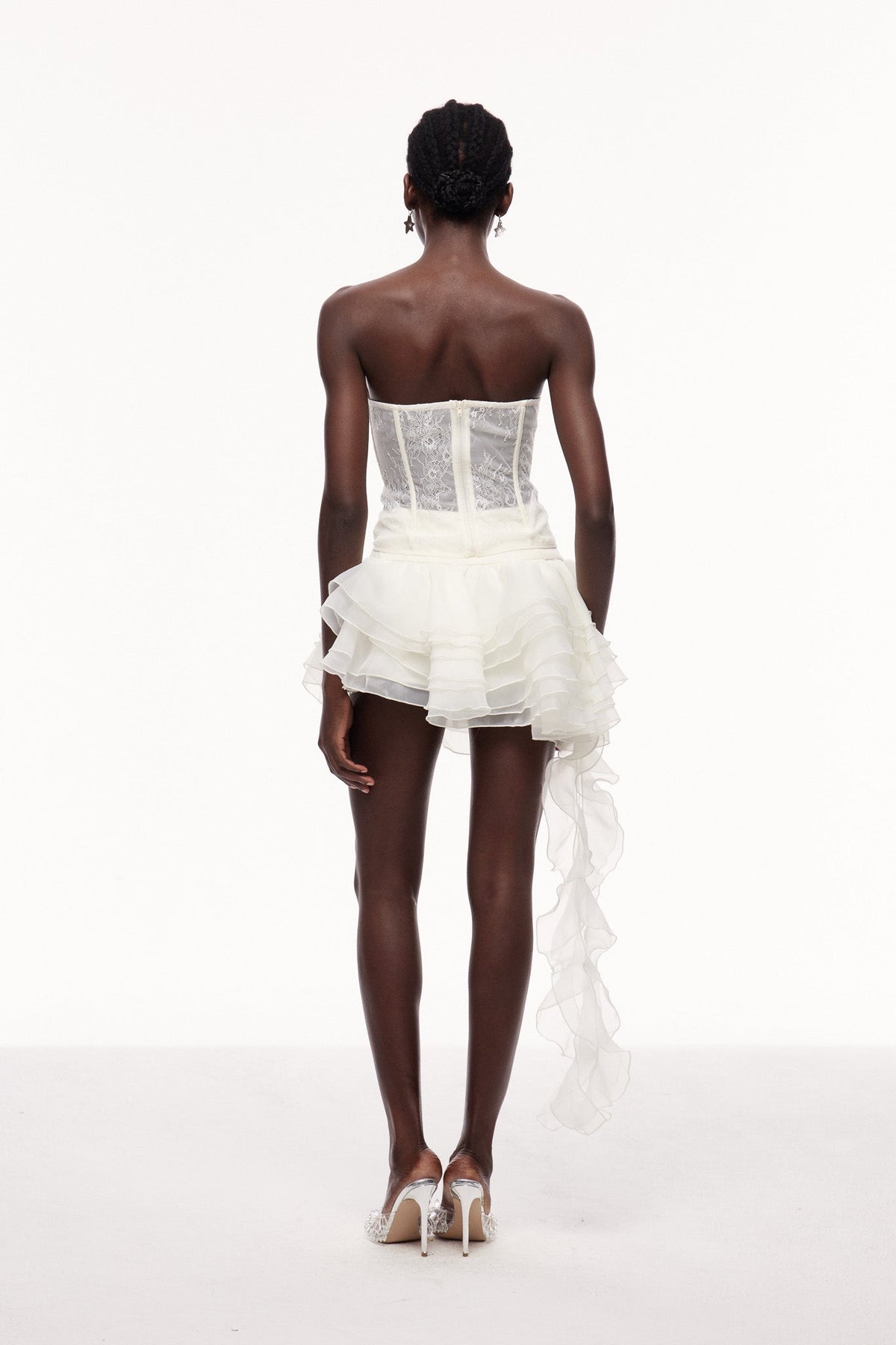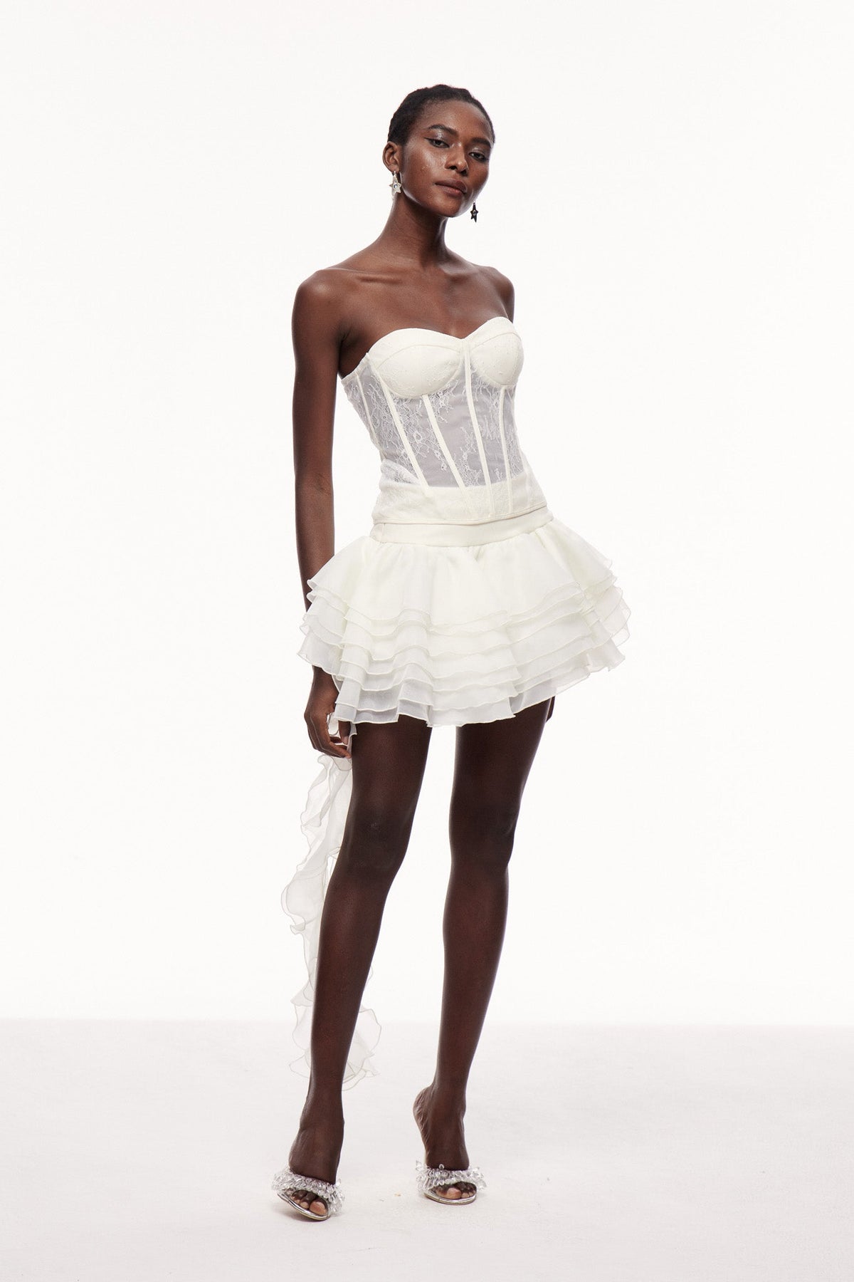 Dantel Korse Asimetrik Saçaklı Etek Takımı
