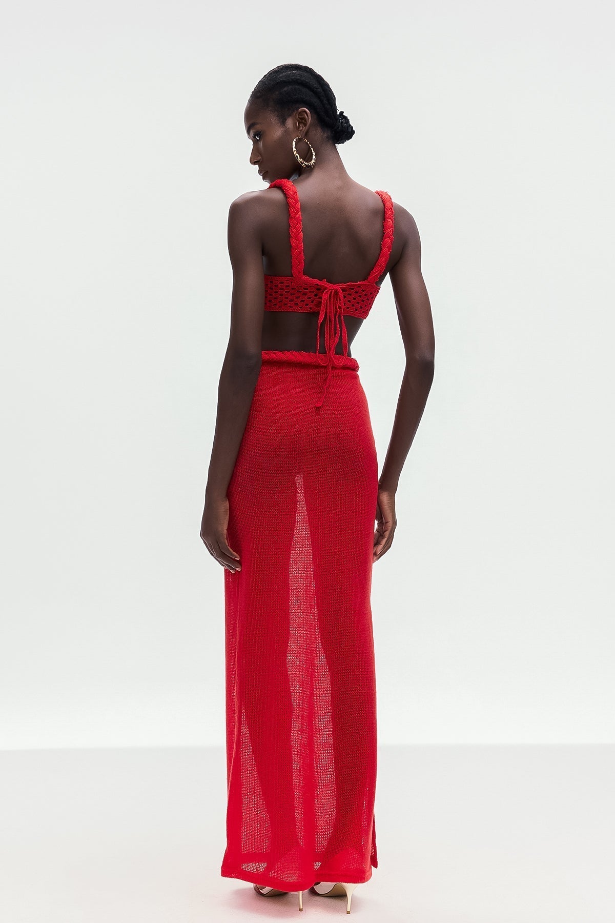Twist Kırmızı Kesimli Örme Etek Takımı